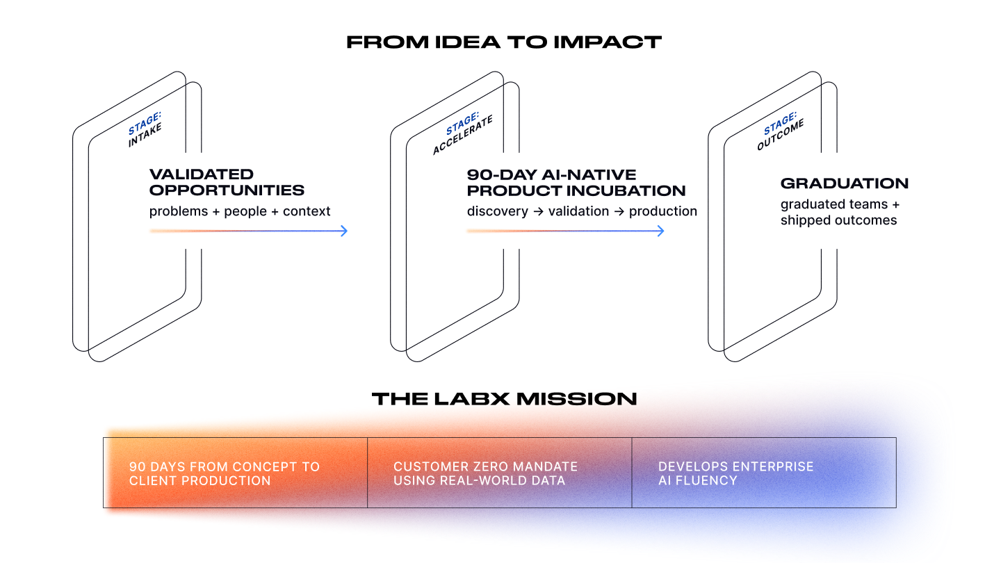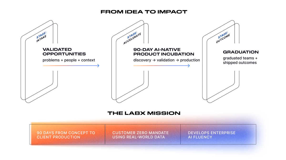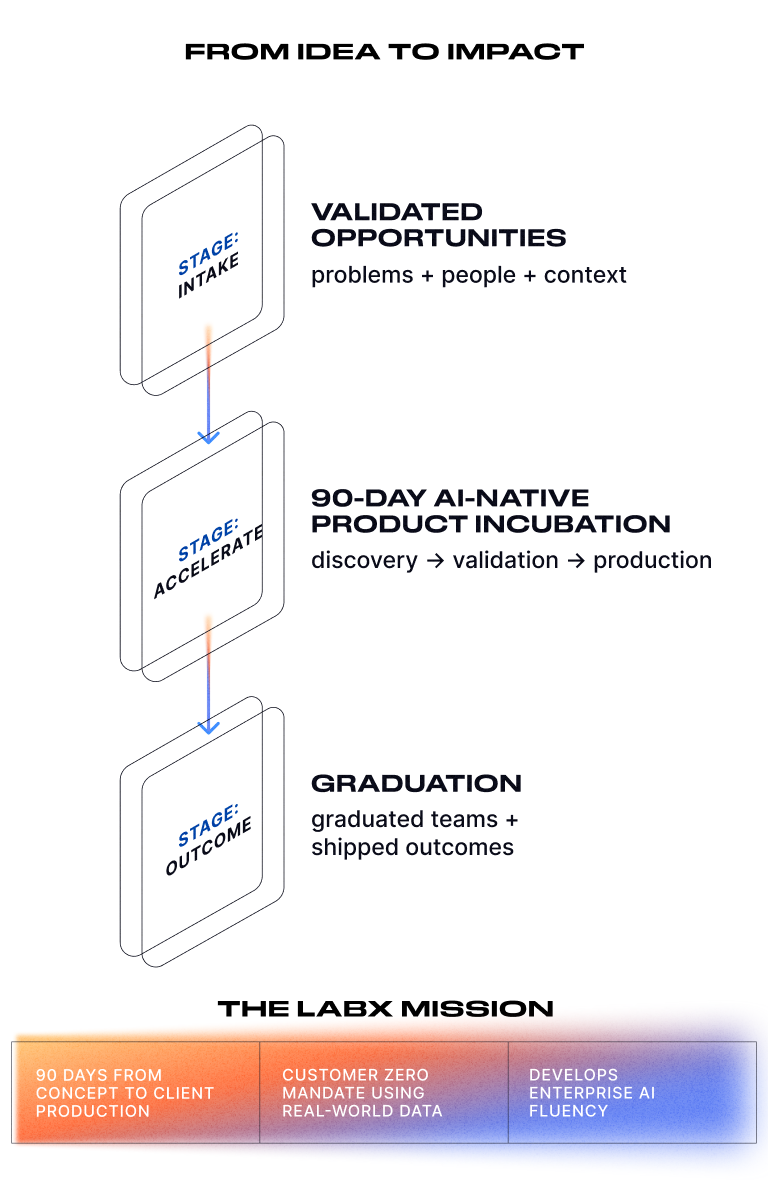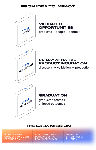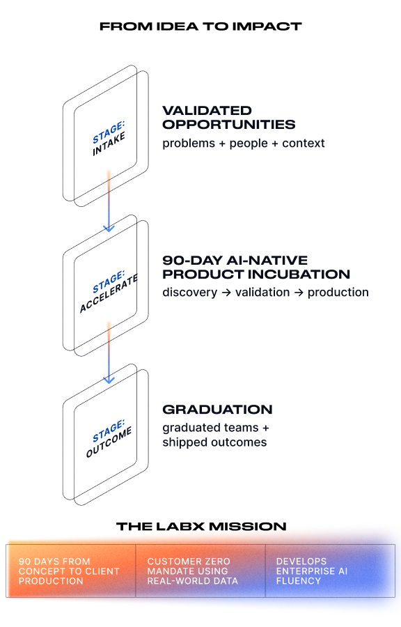 LabX is DXC’s AI-native product incubation lab, delivering production-ready AI solutions in 90 days or less.