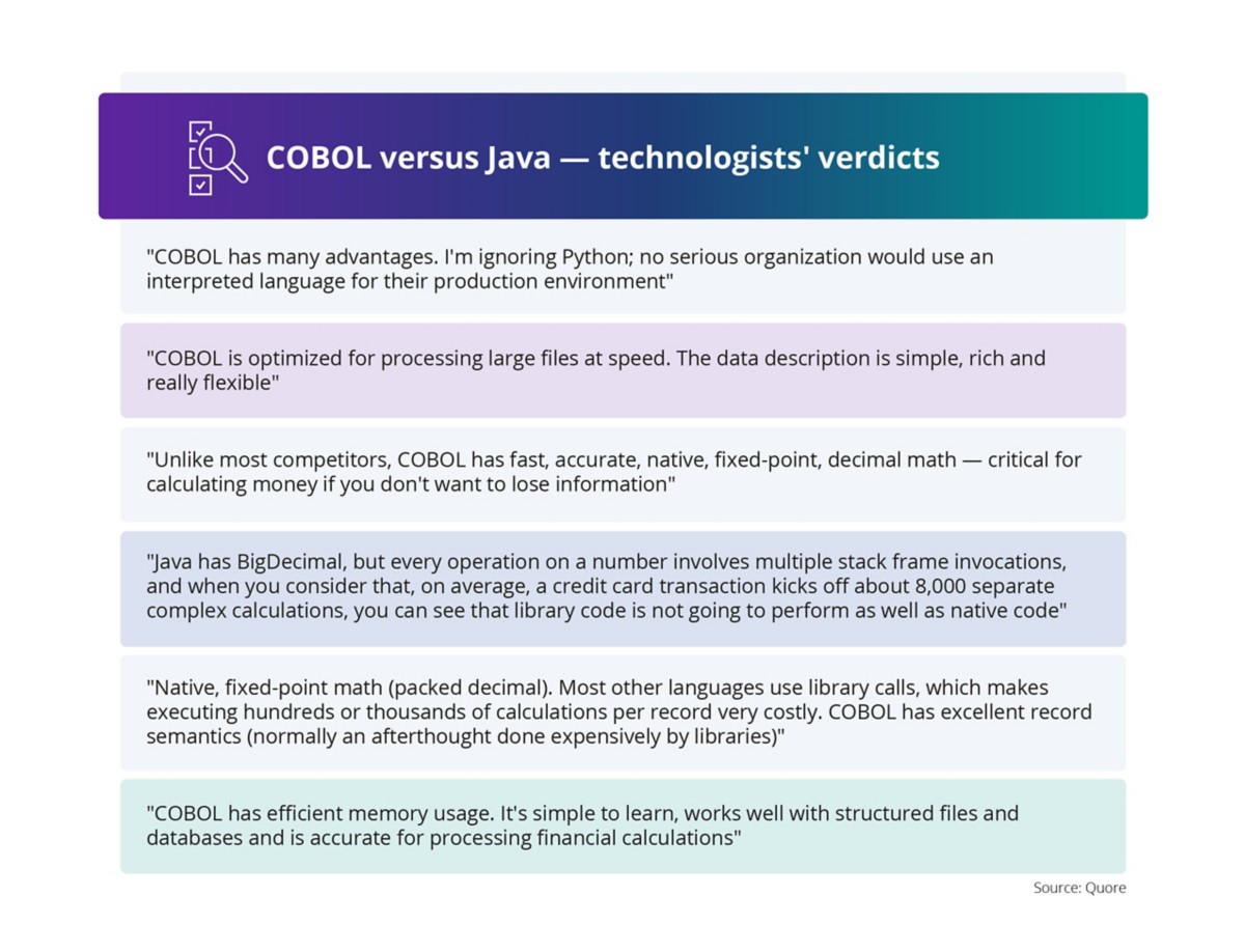 Many consider COBOL to be a legacy system. However, “heritage” is a more appropriate descriptor, because the language’s pivotal, orderly and object-oriented configuration is the mainstay for over 40% of digital banking systems today.