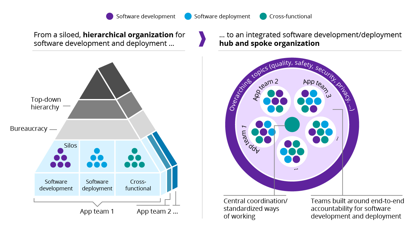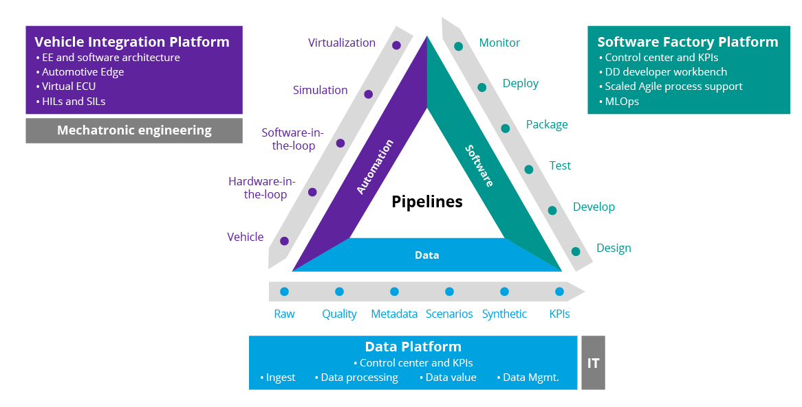 2022/12/6 by Marek Jersak from Luxoft ※本稿はDXC Technologyのグループ企業であるLuxoftの記事を翻訳したものです。出典:The digital lifecycle revolution in a software-defined world 自動車業界は、ソフトウェアデファインドビークルやデータドリブン開発の方向に向かって進んでいます。電動化、コネクティビティ、自動運転、シェア型モビリティの分野で、車両の機能は急速に向上しています。物事が前進すると、それに伴う課題も見つかります。ソフトウェアデファインドビークル (SDV) の場合も、OEMやTier 1にとってSDV用のソフトウェアとデータを中心とした製品やサービスの開発、およびビジネスモデルの確立は大きな挑戦となります。それに加えて、市場においてこれまでとは異なる手法で研究開発に取り組んでいる新興のテクノロジー企業やソフトウェア企業の台頭により、従来の企業は、成功を維持するために自らを変革する必要に迫られています。 この記事は、ソフトウェアデファインドビークル(SDV) に関するシリーズの第2弾です。 複雑なトランスフォーメーション 自動車産業を変革するための課題は多次元的です。まずは、ユーザーの期待について考えてみましょう。誰もがデジタル体験に慣れてきていますが、問題は、その体験を車両にどのように取り入れるかということです。今日のデジタル体験は、特にモバイルデバイス、インターネットサービス、スマートホームにおいて非常にパーソナライズされています。誰もが個人として認識されたいと思っており、ユーザーが車両に期待するのも、そうしたパーソナルな体験です。電動化、コネクティビティ、自動運転、シェア型モビリティに関する体験を考え直す絶好の機会が到来したのです。ソフトウェアとデータは、機能やサービスがさまざまな自動車関連業界 (例えば、エネルギーエコシステムや都市部でますますスマート化するインフラストラクチャなど) にまたがっているため、自動車業界では車両に接続する数多くのデバイスを改良する機会が無数に生まれています。しかし、成功する上で最も重要な側面は、ソフトウェアとサービスに基づいて構築されたビジネスモデルが継続的な収益源に変換することです。さらに明確に言えば、成功するためには革新的な取り組みが必要です。なぜならユーザーは、所有している車両にすでに備わっている機能や付随しているサービスに対しては、新たに費用を支払おうとはしないからです。 上述したとおり、デジタル化が進む自動車の世界には、チャンスが拡大する一方で課題も数多くあります。さまざまな次元で開発が同時に進行するため、企業は次のような一連の課題について検討する必要があります。 進化するテクノロジーへの対応収益の再構築アジリティの向上エンジニアリングとITの連結ソフトウェアとデータの価値評価 — どのように収益化するか / 未来のエコシステムのあり方をどう想定するか / バリューチェーンはどのような形になると予想するか / 市場への新規参入者を最大限に活用するにはどうすればよいか法規制の対応とサイバーセキュリティの維持グローバルな多様性への対応 ソフトウェアの独立性の確立 業界を牽引する主力企業は、ソフトウェアとデータにますます注目しています。 目標は、車両製品のライフサイクルとはほとんど切り離された形で、革新的なソフトウェアや関連サービスを開発して展開し、車両とサービスを「最新」に保つことです。車両自体を販売するのとは別に、現場でそれぞれの有効性を監視して、どのようなパフォーマンスを発揮できるかを理解することが、それらを収益化する方法を学ぶための鍵となります。ソフトウェアは、車両の枠を越えてバックエンドならびに接続されたモバイルデバイスに移行し、大きなエコシステムを構築するようになります。そうなると、非常に効率的に稼働しソフトウェアを展開する工場のようなモデルが必要になり、そこで開発チームから更新されたソフトウェアを取得し、Over the air (OTA) を介して車両の安全性や定期的な機能の更新、または新しいソフトウェアおよびデータベースサービスの提供を適切な頻度で行うことができるようにします。このような仕組みが構築された車両を、業界では、ソフトウェアデファインドビークル (SDV) と呼んでいます。 では、SDVを構築するにはどうすればいいかを考えてみましょう。それには、克服すべき課題への対応を管理しやすいように、段階的に順序だてて進行させていく一連の作業を分けながら並行させるシステム思考のアプローチが鍵となります。私たちのこれまでの経験上、ソフトウェアとデータには、パートナーとサプライヤーのエコシステム、グローバル標準、適切な車両、クラウドバックエンド、開発プラットフォームなどが必要になることが分かっています。さらに、ソフトウェアの導入と監視のためのシームレスなプロセスを確立することも求められます。要するに、進化し続けるテク