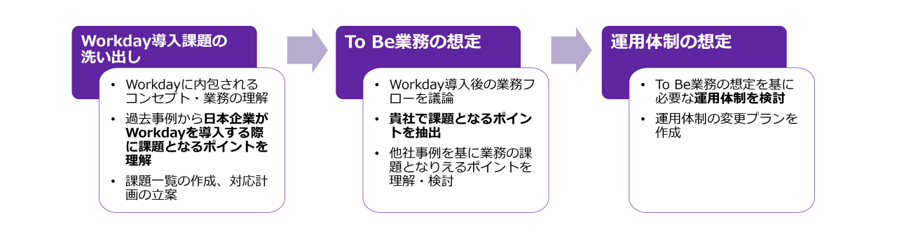 導入前コンサルティングサービス 導入を円滑に進めるため、事前にコンサルティングを実施します。弊社ではこのフェーズをディスカバリーフェーズと呼び、日本のお客様がWorkdayを利用する上で課題となる点を他社事例から紹介し、導入計画に遅れが発生しないようにいたします。 詳しく見る