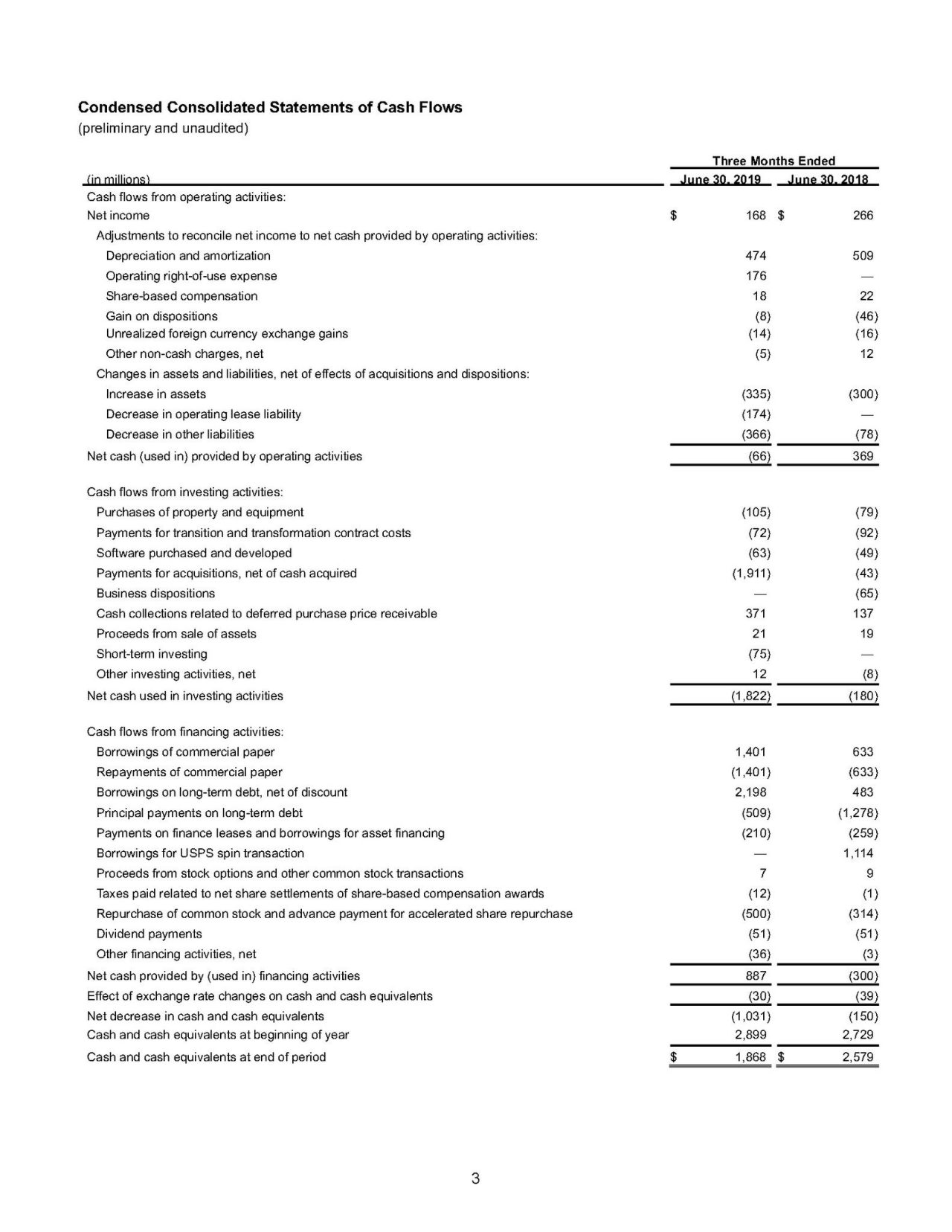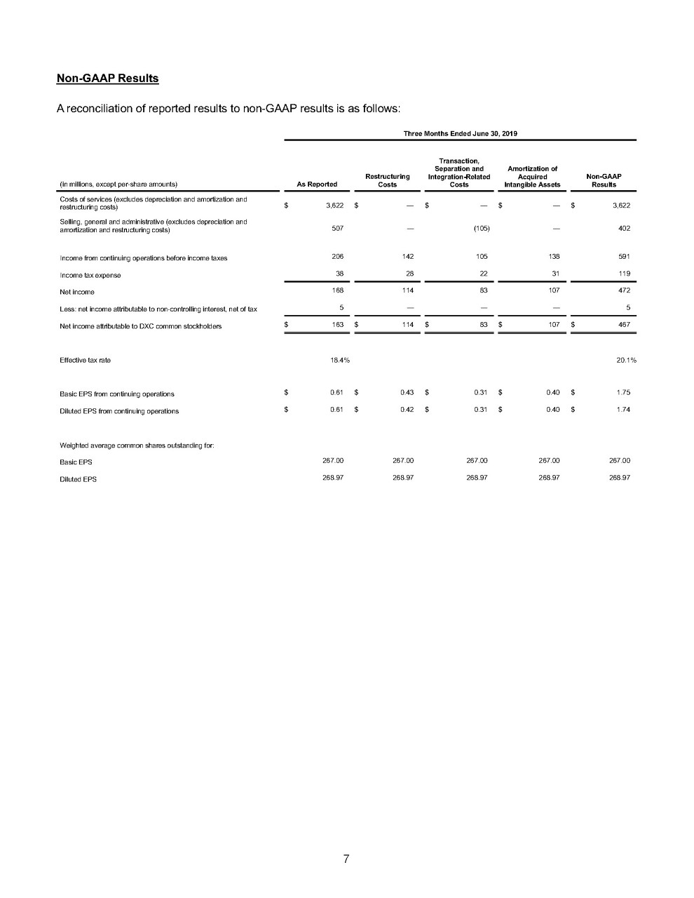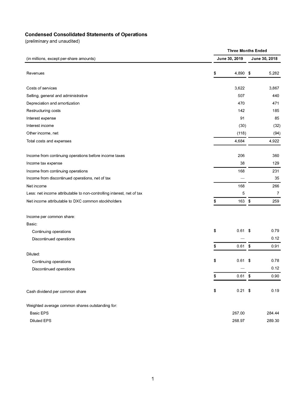 TYSONS, Va., August 8, 2019 - DXC Technology (NYSE: DXC) today reported results for the first quarter of fiscal year 2020, representing the period from April 1 through June 30, 2019.
