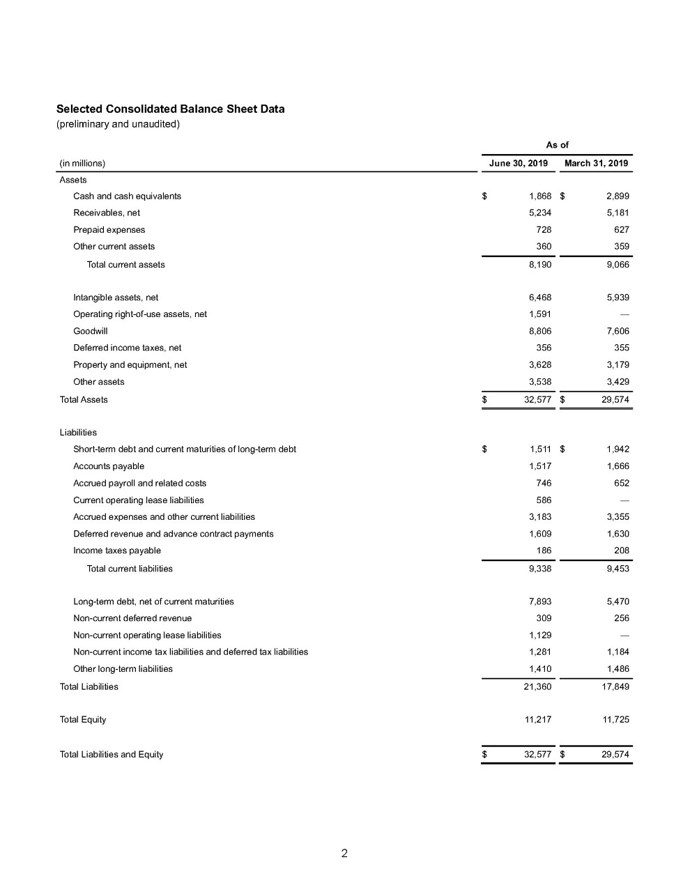 A replay of the conference call will be available from approximately two hours after the conclusion of the call until August 15, 2019. The replay dial-in number is 888-203-1112 for domestic callers and +1-719-457-0820 for callers who reside outside of the United States. The replay passcode is also 6653201. A replay of this webcast will also be available on DXC Technology’s Investor Relations website.