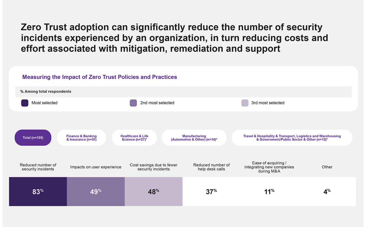 • More than 50% of organizations discovered unexpected value in Zero Trust’s ability to improve user experience alongside security.