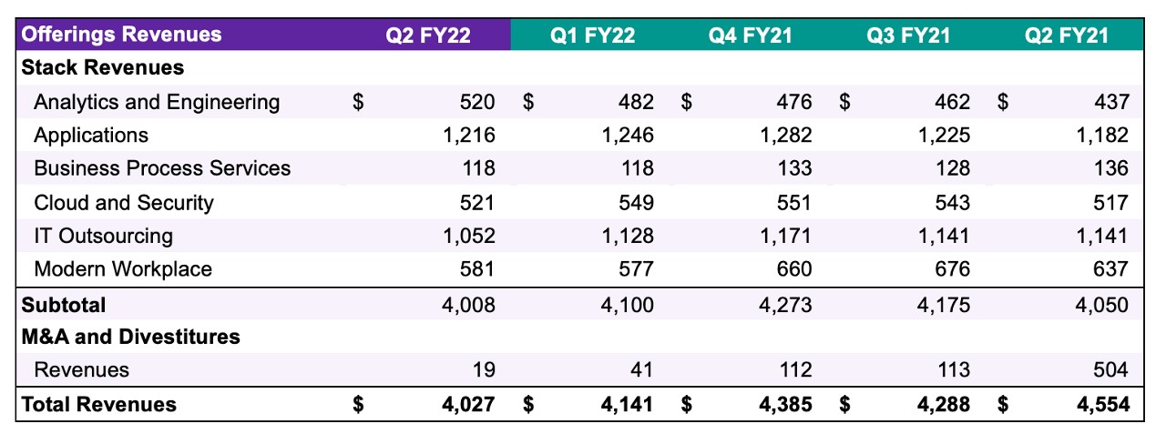 Ken Sharp, Chief Financial Officer, commented: “The second quarter of fiscal year 2022 saw continued progress toward building our strong financial foundation for DXC. Our recent refinancing extends debt maturities, lowers maturity towers, and reduces ongoing interest expense by approximately $50 million annually. We continue to significantly reduce restructuring and TSI expense, lower capital lease payments, reduce our facility footprint and drive our ongoing cost optimization program. Taken together, these initiatives are driving an improvement in DXC's free cash flow generation capability."