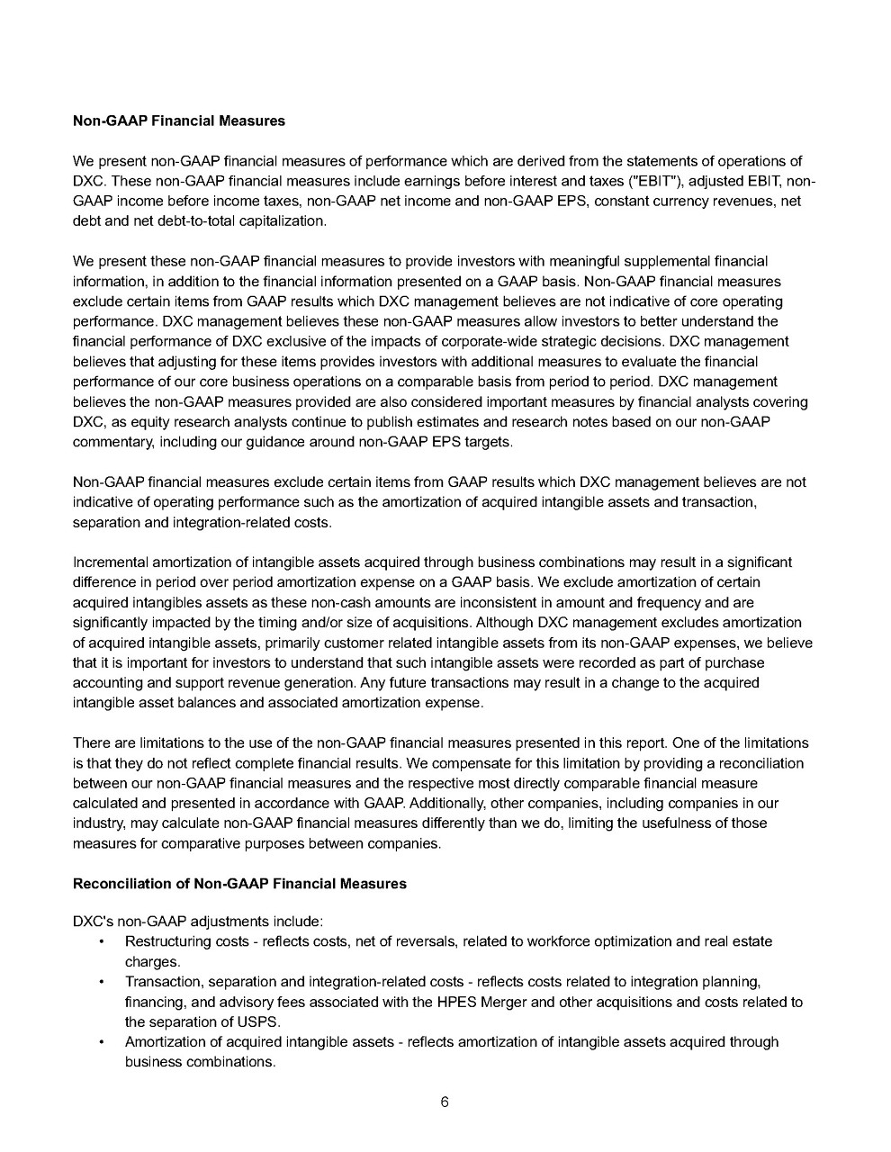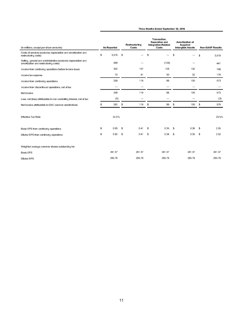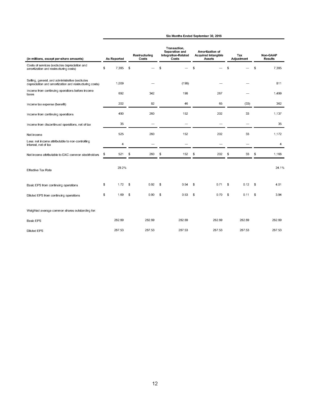 All statements in this press release that do not directly and exclusively relate to historical facts constitute “forward-looking statements.” These statements represent current expectations and beliefs, and no assurance can be given that the results described in such statements will be achieved. Such statements are subject to numerous assumptions, risks, uncertainties and other factors that could cause actual results to differ materially from those described in such statements, many of which are outside of our control. For a written description of these factors, see the section titled “Risk Factors” in DXC's Annual Report on Form 10-K for the fiscal year ended March 31, 2019, and any updating information in subsequent SEC filings including DXC's upcoming Quarterly Report on Form 10-Q for the quarterly period ended September 30, 2019. No assurance can be given that any goal or plan set forth in any forward-looking statement can or will be achieved, and readers are cautioned not to place undue reliance on such statements which speak only as of the date they are made. We do not undertake any obligation to update or release any revisions to any forward-looking statement or to report any events or circumstances after the date of this press release or to reflect the occurrence of unanticipated events except as required by law.