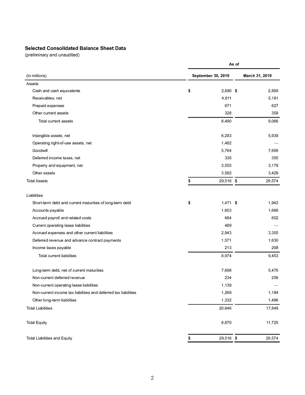 TYSONS, Va., November 11, 2019 - DXC Technology (NYSE: DXC) today reported results for the second quarter of fiscal year 2020, representing the period from July 1 through September 30, 2019.