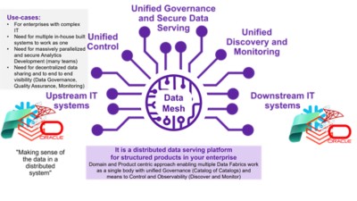 AI Mesh extends Data Mesh principles to AI systems, creating a distributed network of AI agents that dynamically access underlying sources. Unlike static pipelines, AI Mesh leverages agentic AI (autonomous agents that reason, plan and execute tasks) and, as Figure 4 illustrates, it focuses on unifying control, discovery and monitoring upstream and downstream AI systems (often with vendors like Snowflake Copilot).